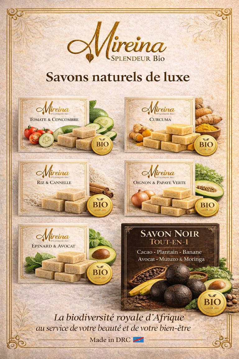 Savons, masques et macerats naturels à base de Fruits, légumes, grains, fleurs, écorces, racines et feuilles. Des plantes issues du terroir d'Afrique et plus particulièrement de la RDC. Apportant bien-être et beauté au visage, au corps et aux cheveux.